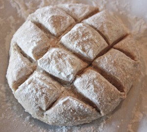 - Dust with flour and cut cobbles with a sharp serrated knife of a lame