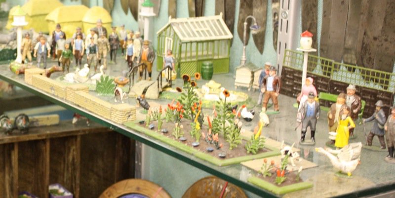 I have a love for miniatures, as well, so this entire collection captured me. The lady sitting by it was delighted I wanted to photograph it. These are toys of a time when one’s imagination led the play. Today’s child is truly missing the poetry of that time.