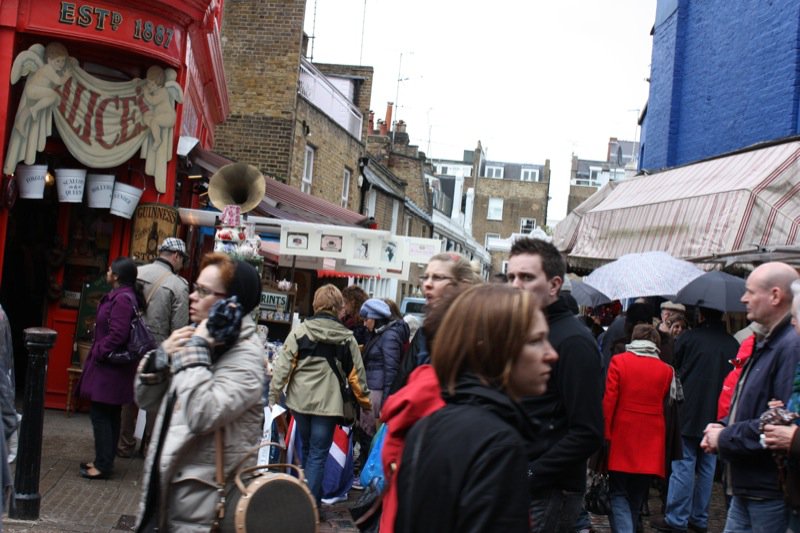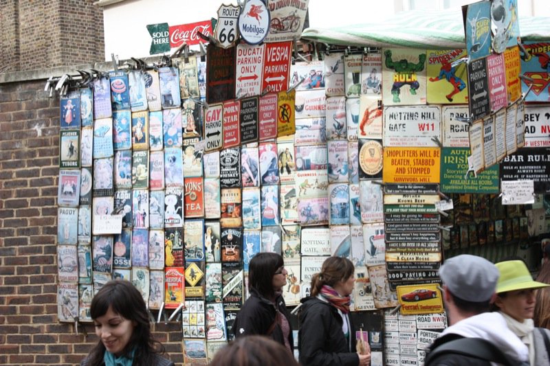Though he was friendly, he really didn’t know answers to any of those questions. All Saints Spitalfields is a chain clothing store that moved into the Portobello Market location just this year. It has created a local outrage as the space used to house “more than 150 traders, including a 94-year-old woman, who made a living there…”. And there is a very real concern that the integrity of the neighbourhood and the market may be compromised by more such businesses.