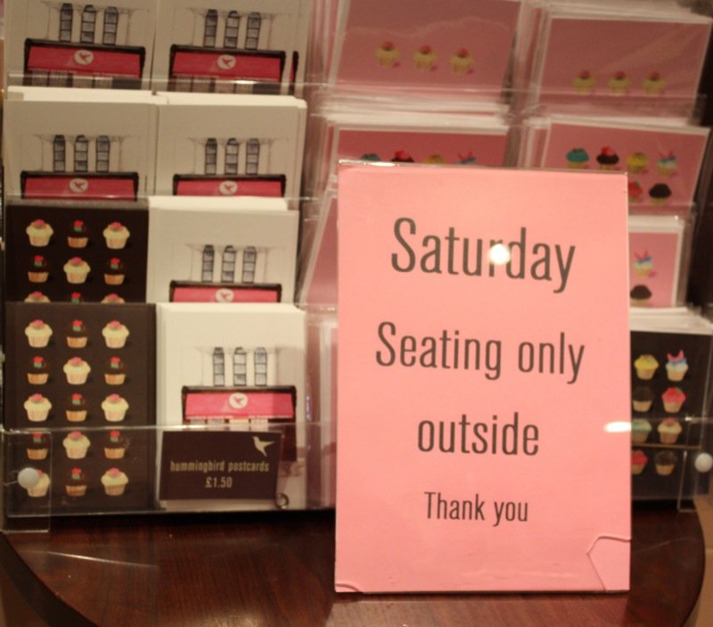 Even on this grey day in London, people were out and about, busy and bustling, happy and friendly. There was a small surge in front of me to a door on my left when I noticed the first opportunity for a coffee. I immediately followed. It was mid afternoon, and I hadn’t had my morning coffee. The gal in front of me was very friendly when I asked what the line up was about. This was a famous cupcake shop. She could tell I was not impressed, and then told me she had been in NYC to Magnolia’s (as had I) and that these cupcakes were ten times better than anything there. I enjoyed a lively conversation with her, recalling that Lauren and I stopped at Magnolias on our way back from the Guggenheim and bought two different cupcakes. Both were light and tasteless and simply conveyors of overly sweet icing.
