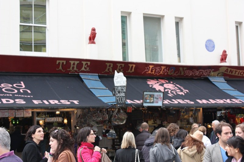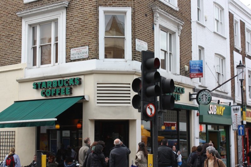 I lifted my head up. Time to start back if I am to meet Vanja at the hotel by 5 o’clock. I have been here about 3 hours, and have to walk all of the way back and through the tube to the hotel in an hour. I have no idea how long it will take. Turning around, I see Starbucks! What is Starbucks doing in the Portabello Market! Isn’t that blasphemy? If I was a Londoner, I would think so. As a tourist, I think so. Let me drink London coffee, at least at the market!