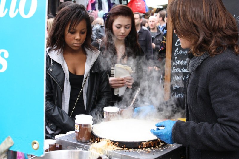 A little voyeuristic, I know. But look at these three lovely young gals in fur, cashmere, and suede. I could not resist capturing their moment at the market. I could write an entire novel around these three characters. The storybook nouveau riche one would expect to find strolling along the antique market on Nottinghill on a Saturday afternoon. Here they are eating crab claws from the booth below.