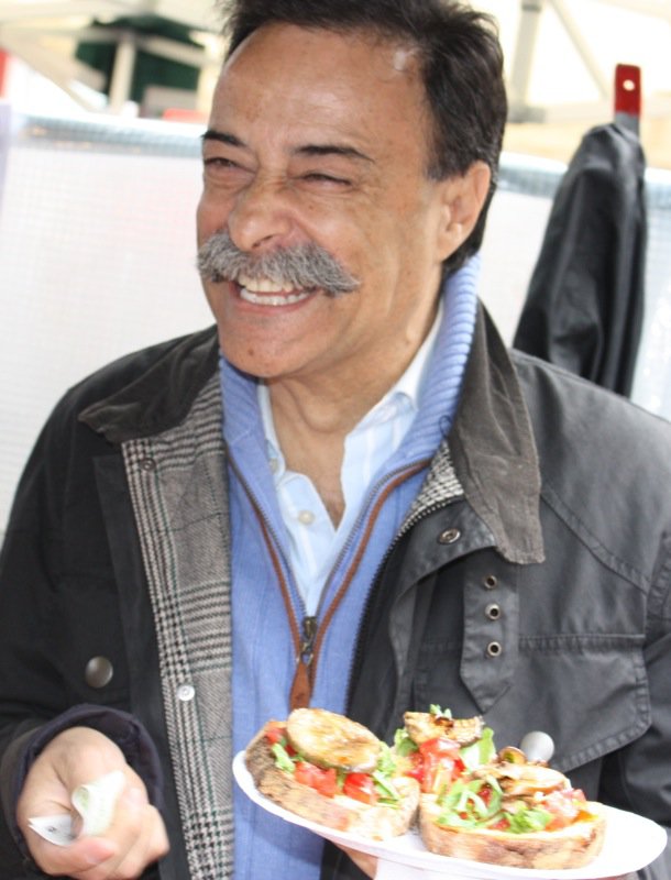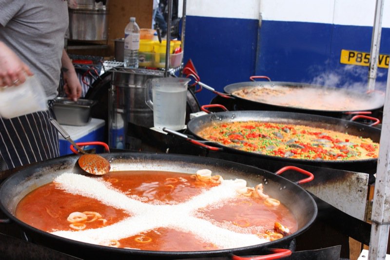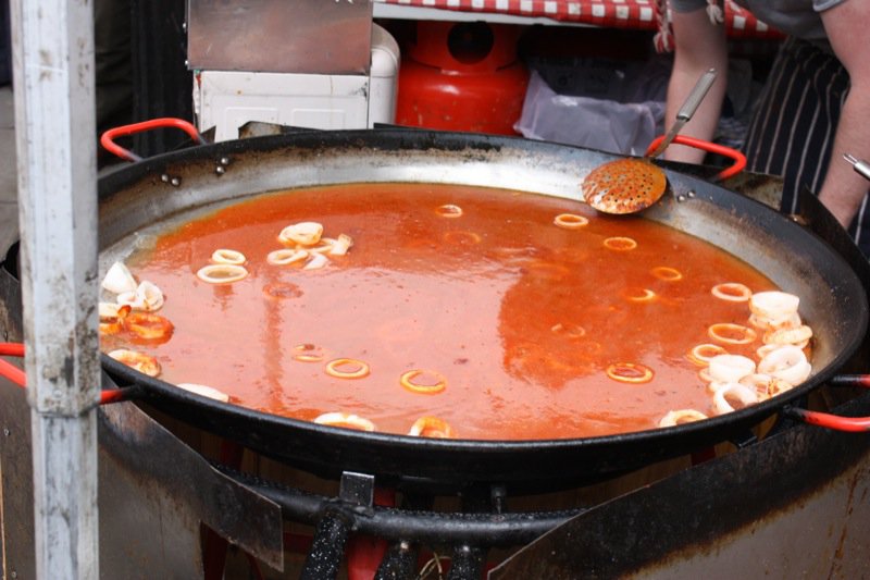 Oh, my! Look at how many there are! And the food in them was disappearing almost faster than they could make it. Every pan they made was a different variety and we were each invited to taste the wonderfully aromatic flavour with a plastic spoon once it was ready for sale. The one I tried transported me to the Adriatic Coast and the fresh mussel lunch I was enjoying last summer right beside the sea at Perast.