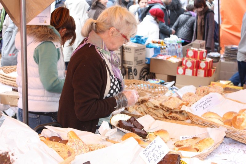 Artisan baked goods. I have never seen bread pudding look like this (below, left). This booth was really incredible. Baking all the amazing homey items, and then getting them here would be a huge undertaking. There must be considerable waste, too. (Who thinks like that? – me!)