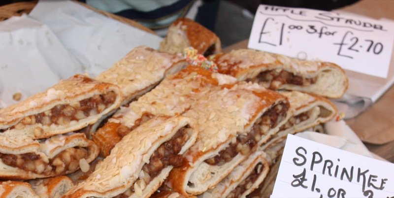 The apple strudel looked so different than we are used to in Western Canada. But, I have seen the real thing made with the most transparent sheets of homemade pastry in Vienna and in the Eastern Block countries. Nothing can top it. This one certainly looks like it was made with a whole lotta love, but the crust is too thick for my liking.