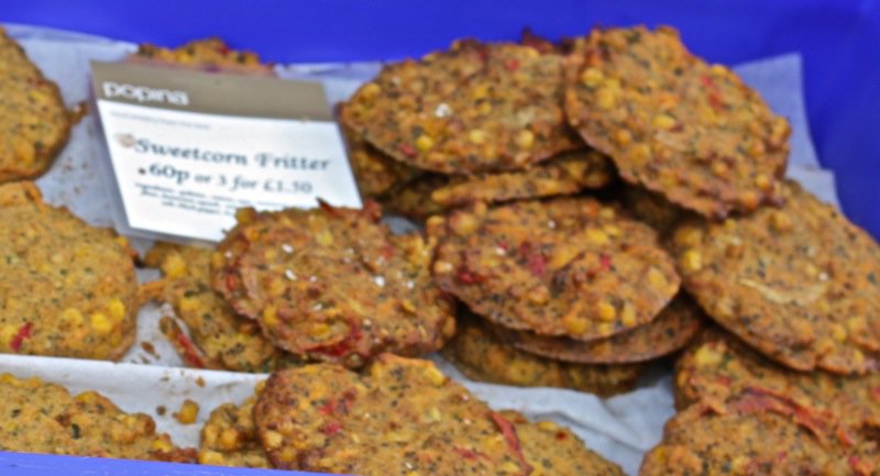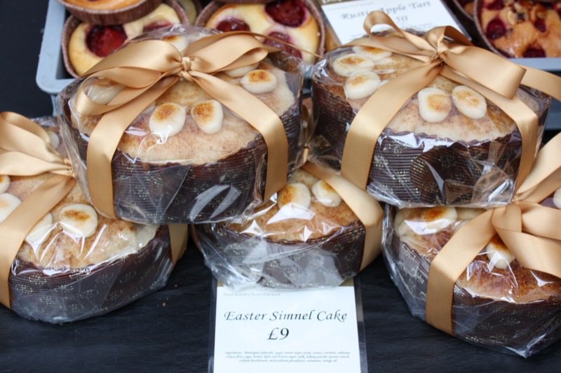 The Sweet Corn Fritters (below, left) looked like savory cookies. What a concept! The Easter Simnel Cakes were wrapped so beautifully. I investigated these as much as possible through the wrapping. I was surprised, upon return, that this English tradition did not cross the pond with so many others that are part of my Canadian heritage. I have never heard of, or seen one of these. (The link is a very interesting read, though.)