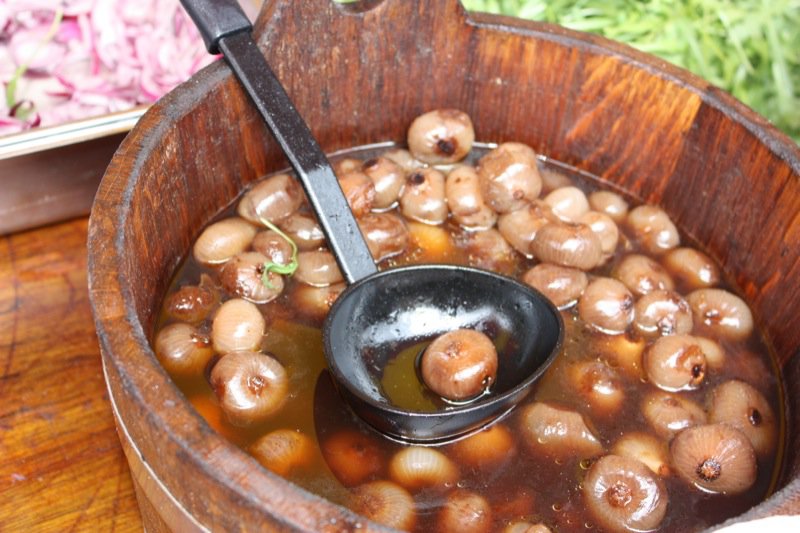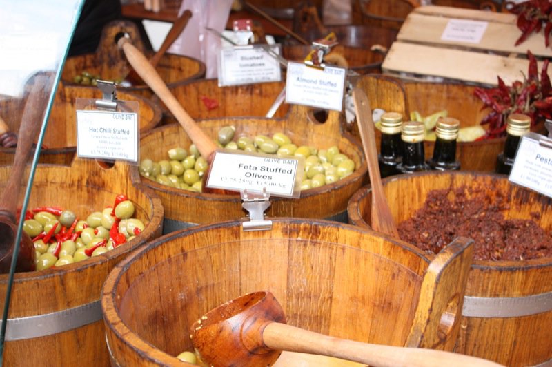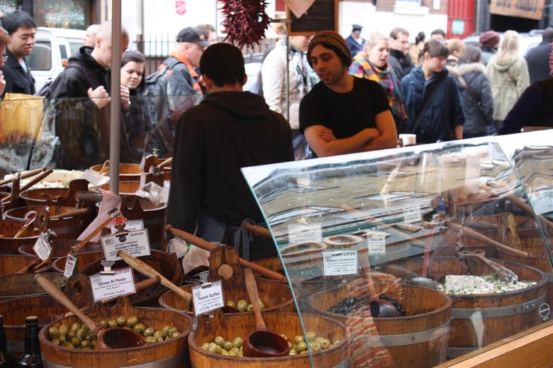 And never a dull moment: wooden buckets full of condiments, similar to what I found in Harrod’s on the food floor. Each item looked fresh and tasty. How much volume would need to pass by these big tubs to empty them daily?