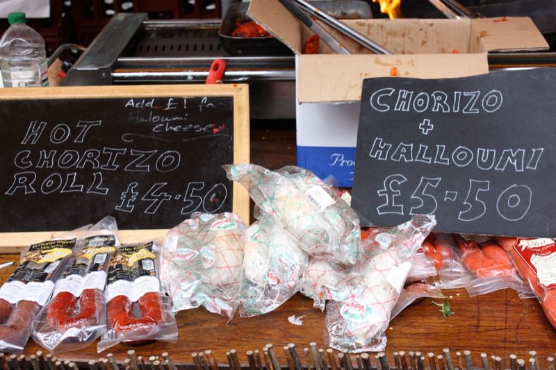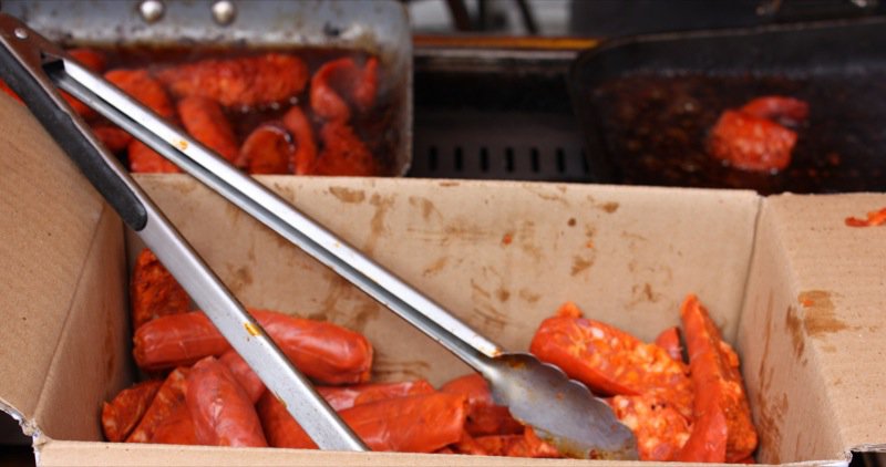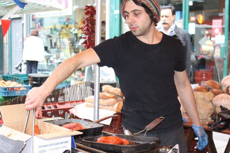 At the other end of the open tub tables a fellow was making fresh chorizo sausage sandwiches with your choice of condiments.
