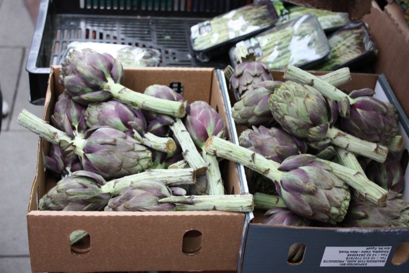On the other side of the fresh food market, the spring artichokes reminded me of being at Carmel last summer seeing fields of them grow.