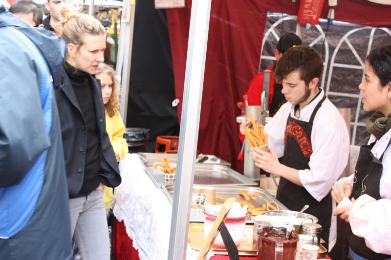 The fresh air is sweet with the scent of Easter and Spring…. and, look! (below, left): french fries in newspaper!