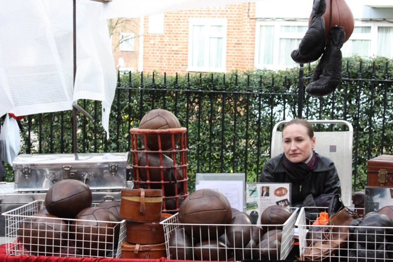 Vintage leather basketballs and footballs. I wonder how your soccer game is going, Vanja. And more toy soldiers… and so many miniature delights that captured me for hours and hours as a child.