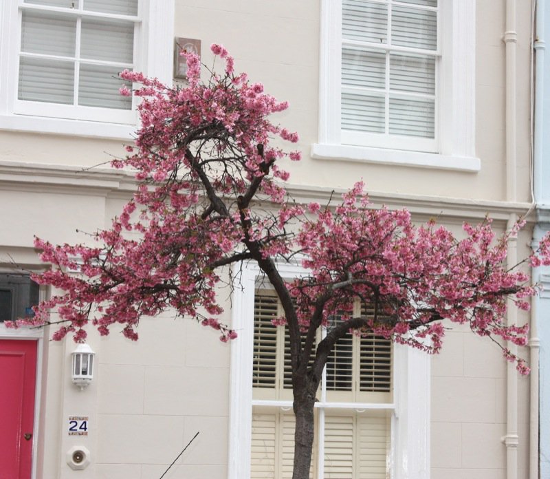 So pretty. I have no idea what it is. I am on the street around the corner now where I first entered and saw the taxis, heading back to the intersecting road where the Nodding Hill Gate station is.