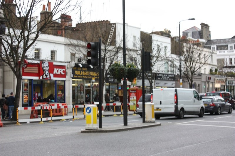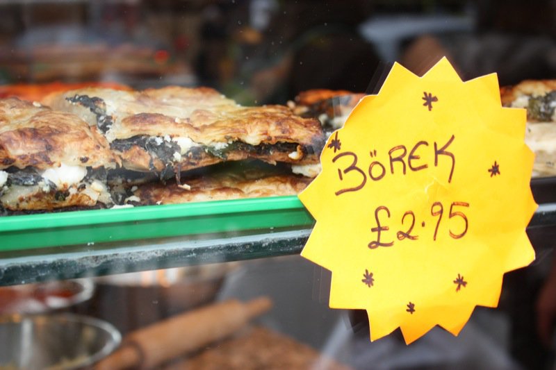 This one is for you, Vanja! Borek! I found some borek here! Crossing the street to the Underground, I turn and see Burger King! Then, KFC (lower left)!! Who needs it? Really! We are in London Town!