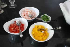 - Reserve 1/2 cup tomato, english cucumber and orange pepper