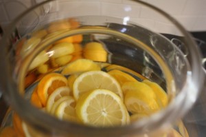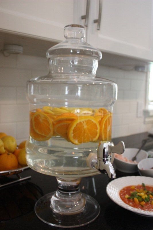 Citrus scented water seems to be a trend this summer. There are large jugs for sale at Costco and Winners and I am seeing these crystal cold jugs brimming in the most sophisticated environments inviting relaxation and renewal.