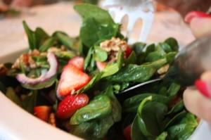And then, two beautfiul quiche were served with a tender sweet spinach and strawberry salad: the perfect afternoon ladies luncheon.