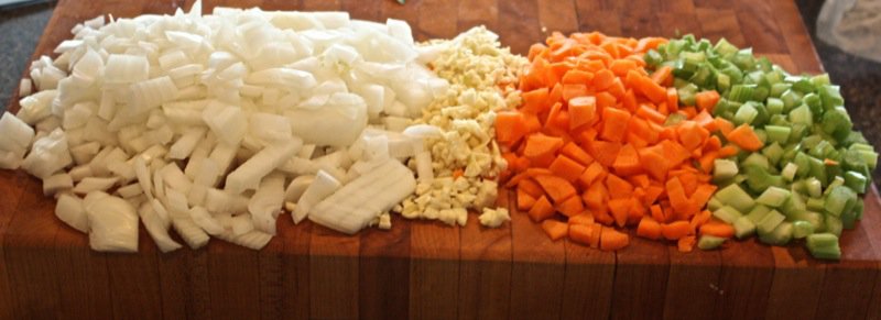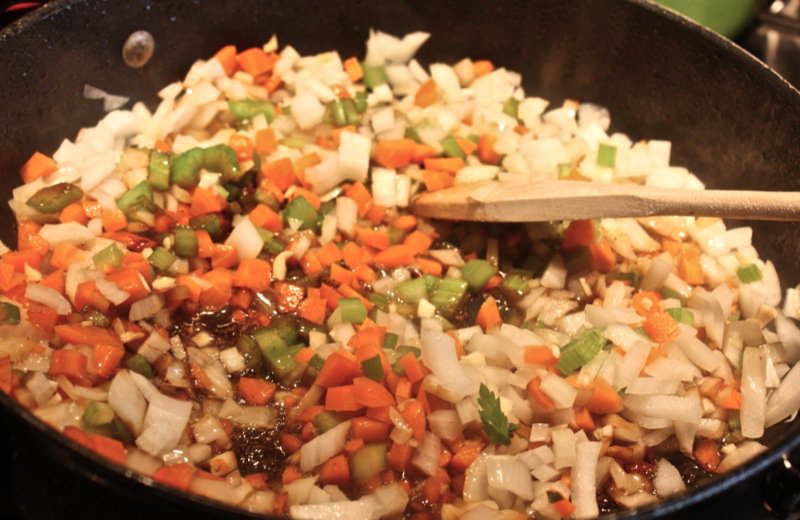 - In a large skillet or dutch oven, over medium heat, sautéonions, carrots and celery in oil for about five minutes, or until translucent