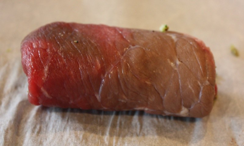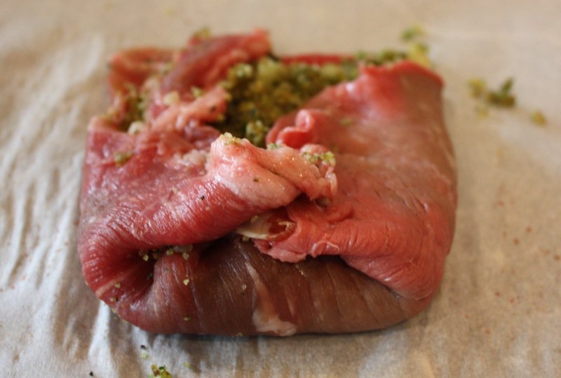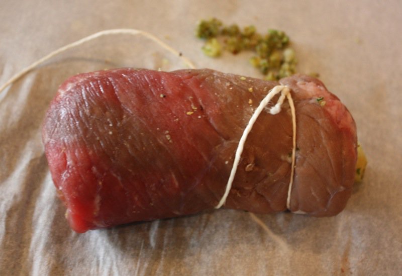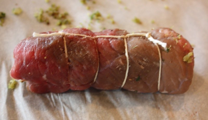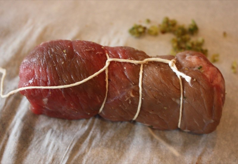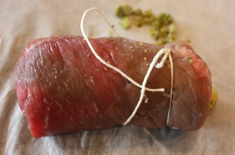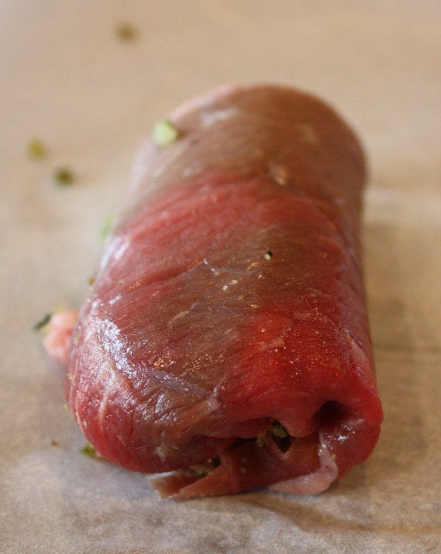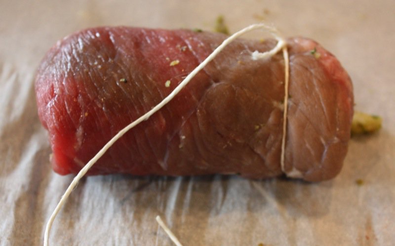 I found the meat very easy to roll and tuck. After turning the length up, and both sides in, it rolled perfectly onto itself, ready to be tied with butcher’s string.