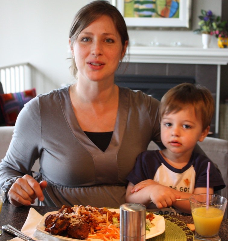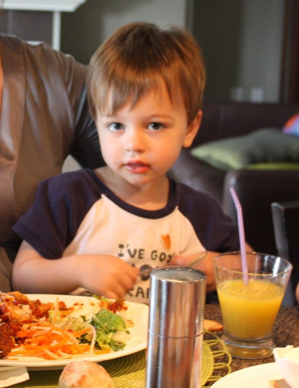 And Cade sat on mommy Heather’s very full, due-in-two-weeks-lap, and ate a little bit of everything. Somehow he ended up wearing a lot of what he ate, and I don’t know how that really happened as he had incredible little manners.