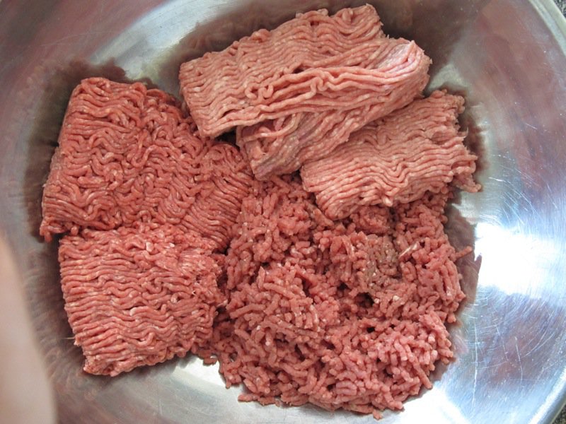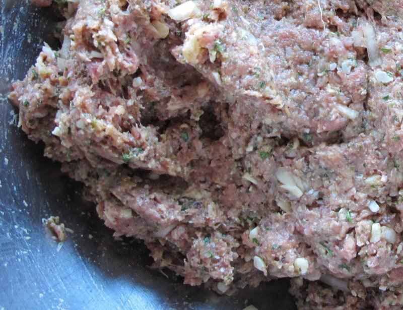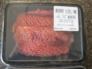 I have my extra fatty pork ordered from Irving’s Farm Fresh (City Market and OSFM), and my ground beef from Jerry Kitt’s First Nature Farm booth at the Old Strathcona Farmer’s Market added to the veal.