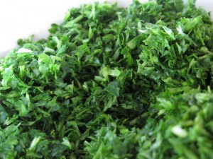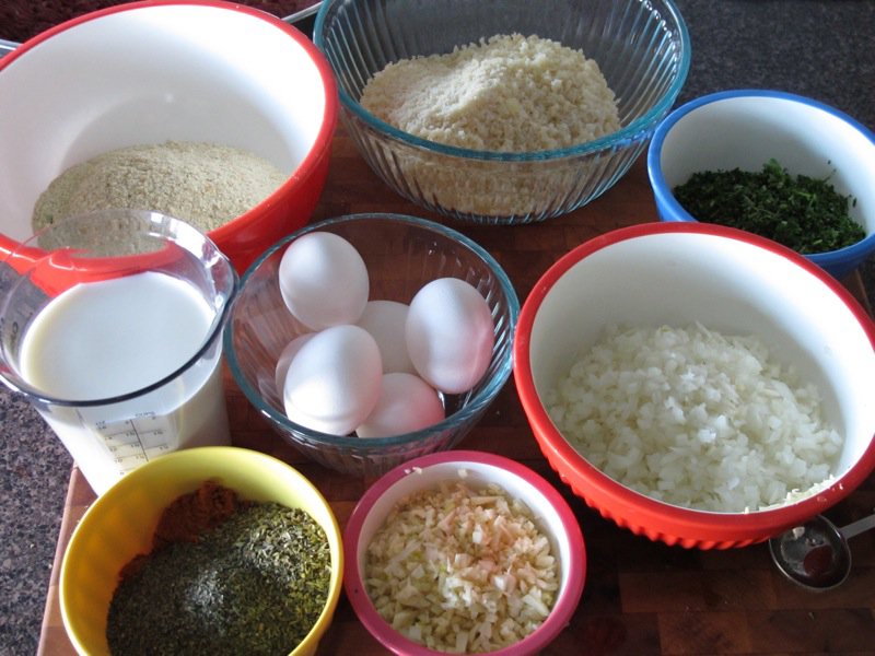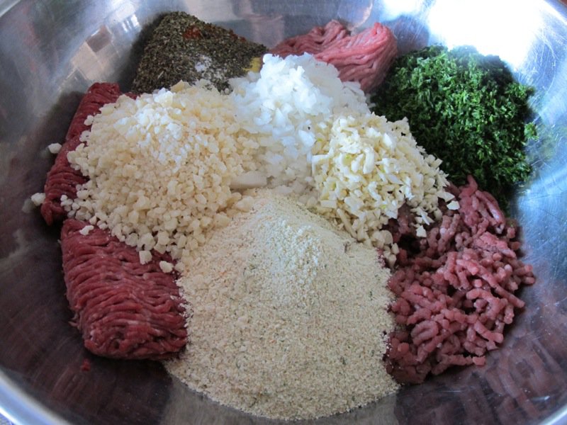 Freshly chopped flat leafed parsley, freshly grated Parmesan, finely chopped onions and finely crushed soda crackers.