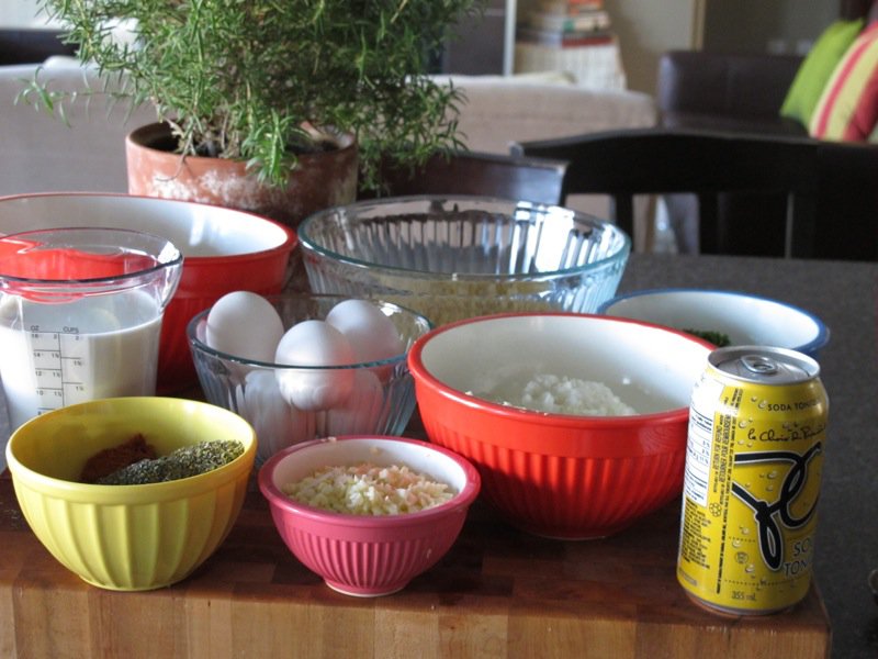 - Mix all ingredients, except eggs, club soda and milk, until well combined