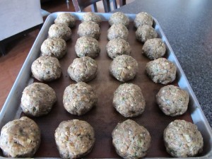 - Roll into larger main course sized balls (about an inch and half in diameter) and place on parchment covered baking sheet
