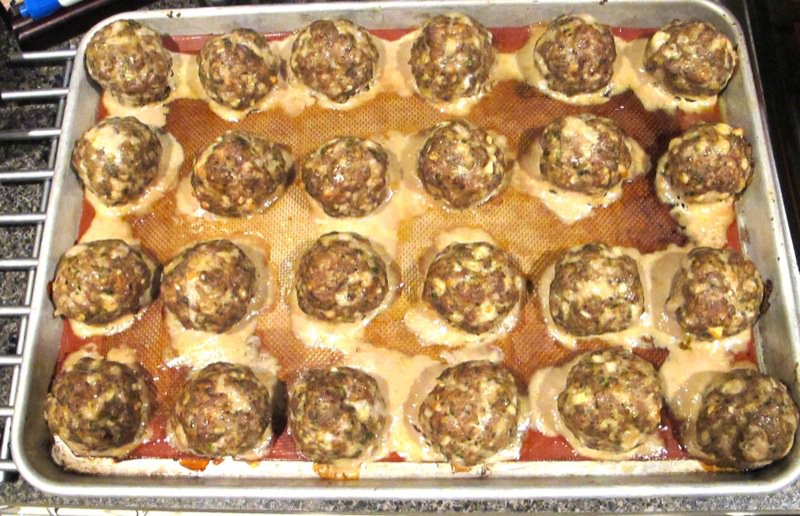 Half went into the oven for this evening meal, and the other half onto cookie sheets to be flash frozen (as close as possible to this in a home freezer) and then packaged into freezer bags for the Sunday Sauce.