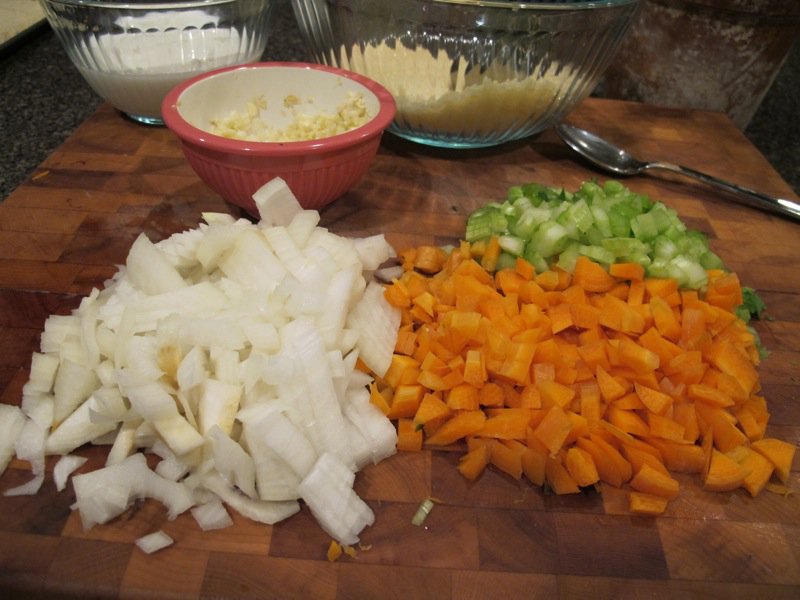 While they are cooking, out come the knives and cutting boards to make my basic tomato sauce.