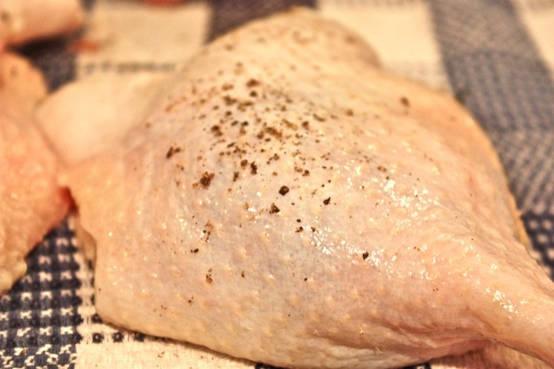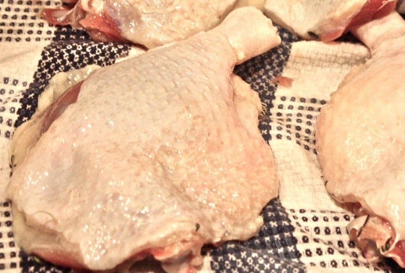 - After brining, rinse legs and pat dry with paper towels: I use tea towels and really washed and dried well