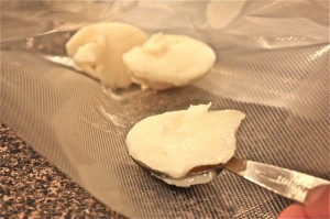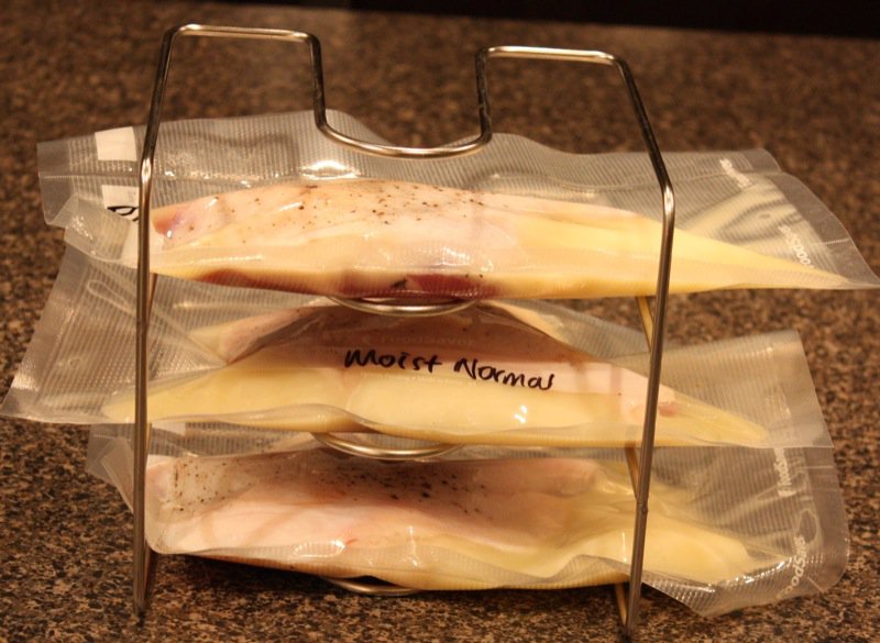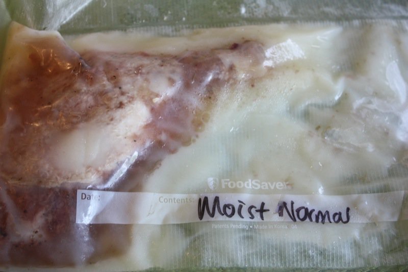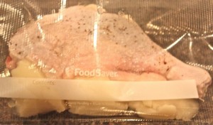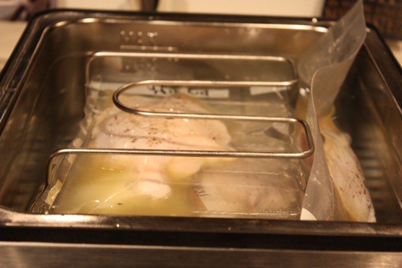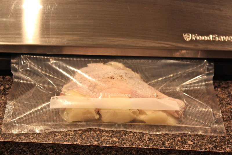 I used my Food Safe machine as we quickly discovered that the one that accompanied the sous vide machine didn’t work. Or, we couldn’t get it to work. But, don’t panic as the equipment I received is used. If you were to purchase from the company, your items would be new! Vacuum sealing reduces aerobic bacterial growth and allows for the efficient transfer of thermal energy from the water (or steam) to the food. Vacuum packaging prevents evaporative flavour and moisture loss during cooking and inhibits off-flavors from oxidation. This results in especially flavourful and nutritious food (Douglas Baldwin).