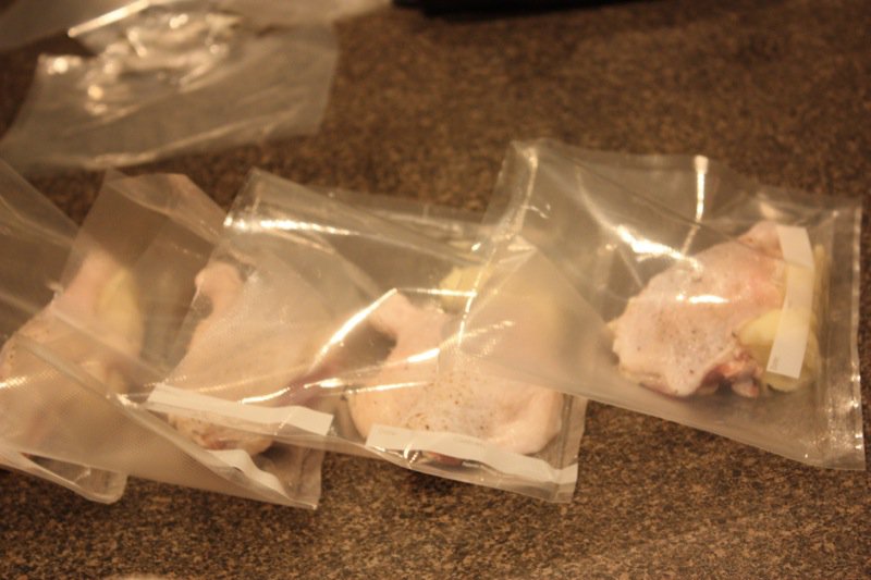 - Individually vacuum seal the legs with 2to 4 tablespoons of rendered fat: I used 3 tablespoons