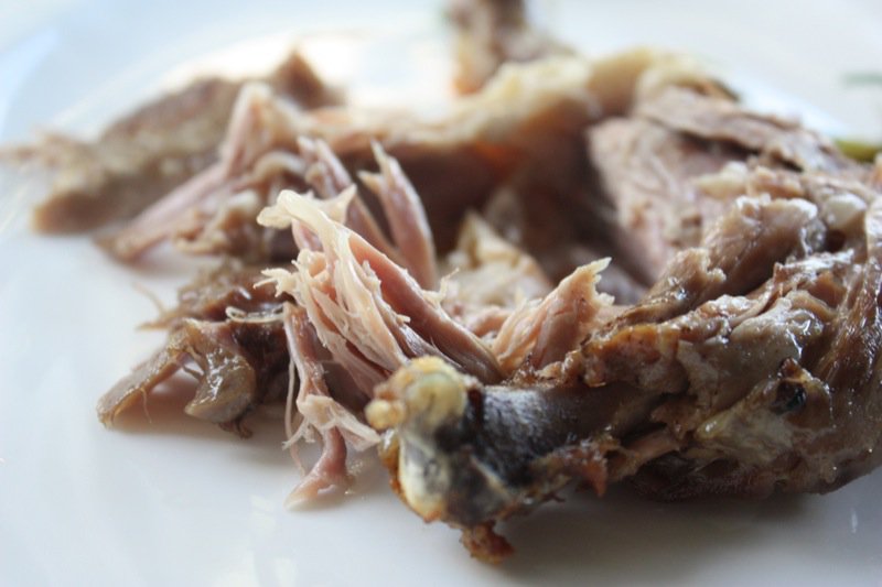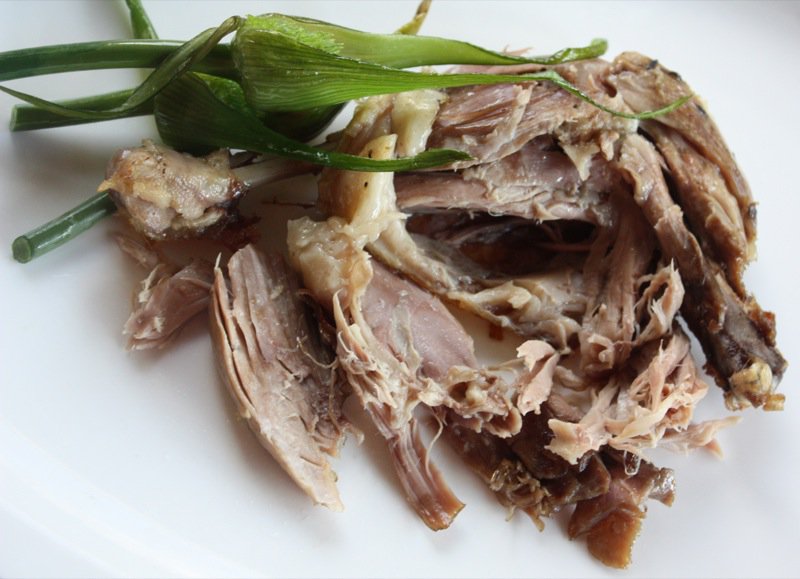 - To serve, reheat and sear until skin is crispy or just discard skin and serve meat torn into pieces