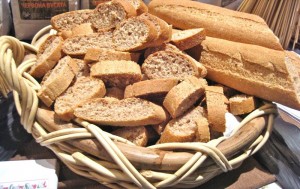 Teresa Spinelli and Angelo, her amazing Baker, were presenting the Red Fife bread for tasting from the Italian Centre Shop. Their display was reminiscent of the open air markets in Europe. Nostalgia set in and I could barely leave their table. Their bread was outstanding, and at the end of the evening, it was put into baskets and the batons were given away to the guests to take home. Now, that is indulgent!