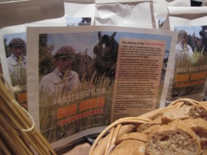 Indulgence Edmonton is a spectacular local food and wine event organized by a select committee of Edmonton Slow Food members headed by Mary Bailey. Slow Food Edmonton  is a non-profit, educational organization that began in Italy in 1989. Its members are dedicated to supporting and celebrating the food traditions within the Edmonton area. Distinct animal breeds, heirloom seeds, fruits and vegetable, beer and  other artisanal products are all part of our local cultural identity. Red Fife Wheat is Canada’s only Slow Food internationally recognized heritage food item and for the first time this year is presented for tasting at the Italian Centre Shop table. They also sell the wheat at their shops for milling and baking with.