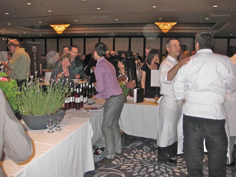 I saw the greens first, and had to snap a shot. It is just that time of year. Mine are sprouting in the garden. They are seasonal. It is so exciting in our winter climate to have seasonal greens! L2 Grill was a very friendly group of people. Their food was plated beautifully and they were having a cheery good time cavorting with all of us. I met their two young students from Italy and was very impressed with them for taking on the opportunity to have young apprentices work with them. What a wonderful opportunity for the students. They were paired with Carmen Creek Gourmet Bison and created a hickory-smoked Carmen Creek bison strip loin with a chanterelle and beefsteak mushroom ragout, and watercress potato crème. I think I see and tasted tomatoes in there, too. It was really very good. I loved the artistic plating and will definitely remember to do this myself with my potatoes. The wine pairing was the Tinhorn Creek 2006 Oldfield Series Merlot.
