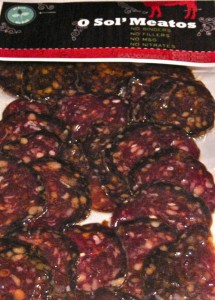 No, not blood sausage – but venison, or deer sausage. Unless you are talking about the slices on the cracker. That is not blood sausage either.
