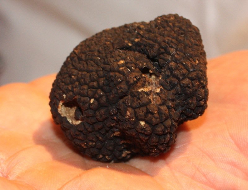 Look at this amazing Black Summer Truffle, above, from Mona Foods. It sells for under two dollars an ounce, so this palm full is between twenty five and thirty dollars. YUM! They had two chefs working with their food this year and sported truffles at both locations.