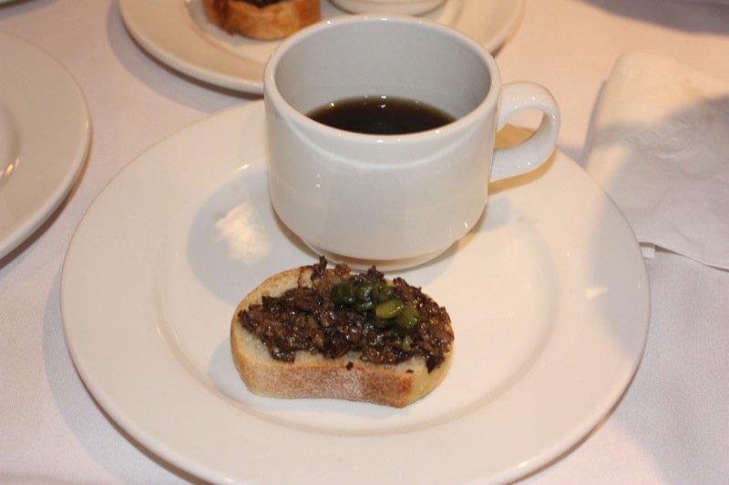 Oh, my! Look at that beautiful summer truffle from Mo Na Food. Whenever I get to the City Market downtown, I never miss them. They had ramps this spring, and then huge fresh garlic elephant chives (pictured with my duck confit). I have bought all kinds of wonderful berries from them, and they will even source rose hips for you in the early fall. Jack’s Grill partnered with them to make an incredible umami laden broth of Mo Na mushrooms with duxelles garlic green crostini. The elephant garlic chives were used, too. I loved the idea of this dish. It was novel, and I like novel. It also was in serious need of salt. It wasn’t just me. I checked. A little salt would have sung and swung this dish to a whole other level.