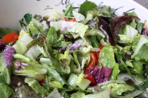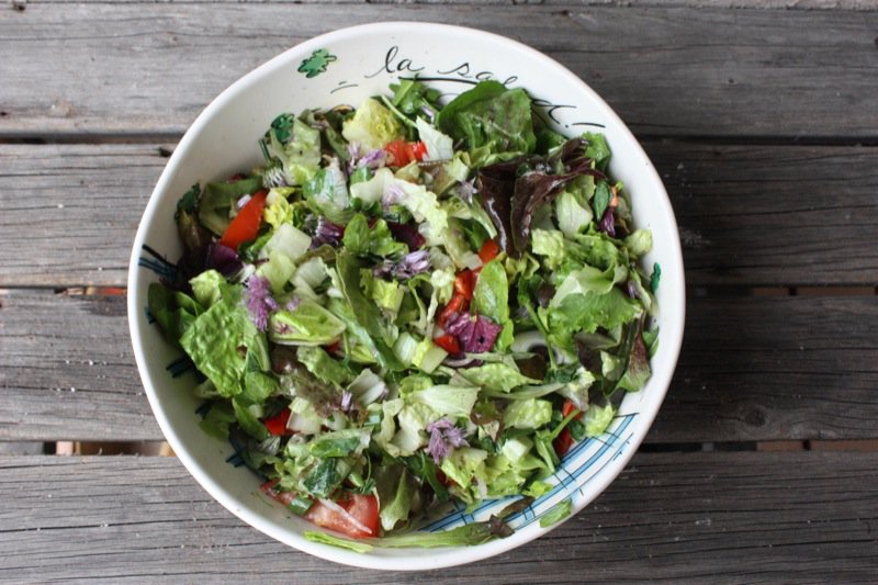 The salad included Greens Eggs & Hams Greens (yes, they cost more, but are hand washed and last a long time in the fridge), Sundog Farm’s pea tendrils, toasted spiced walnuts and my garden chives with an oil and vinegar dressing. Simple, fresh, and full of crisp Spring flavours.