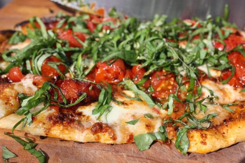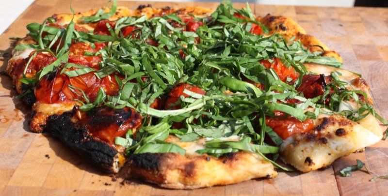 Mack and Sharon’s last pizza is out. What beautiful tomatoes! This would be a good moment to also compliment Vince and Colleen on their amazing dough. Look at it!