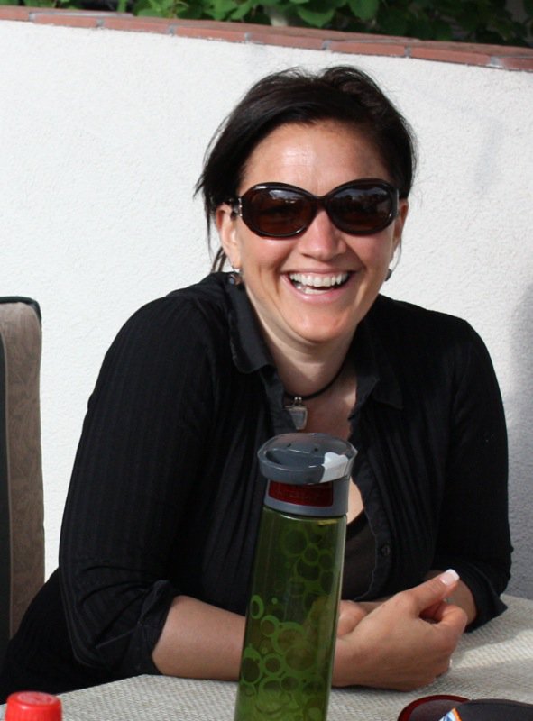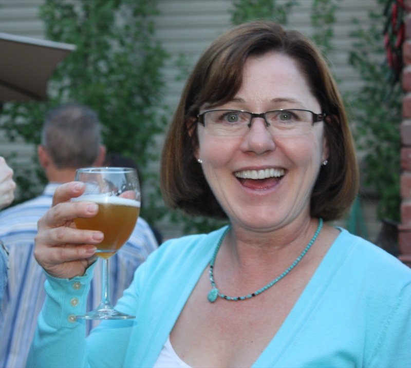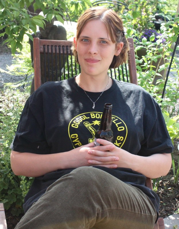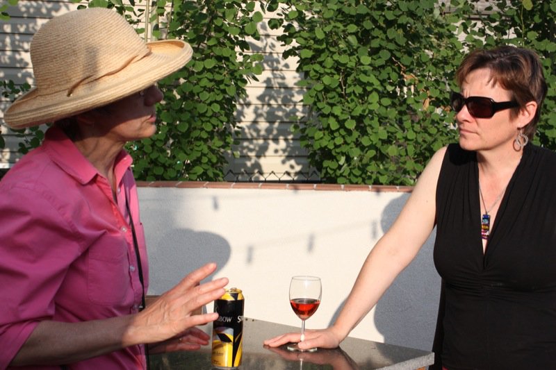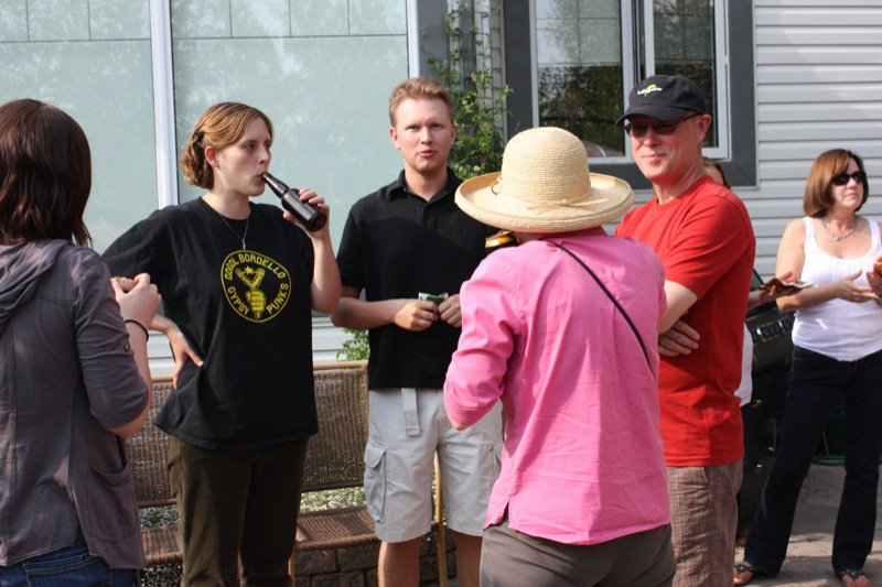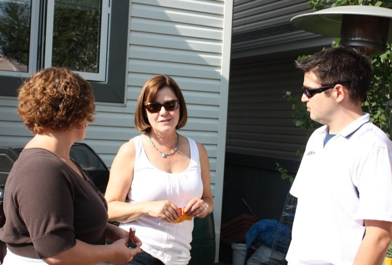Neil was the pizza cutter extraordinaire! Below, Tara and her sister relax in the shade with a cold beer.