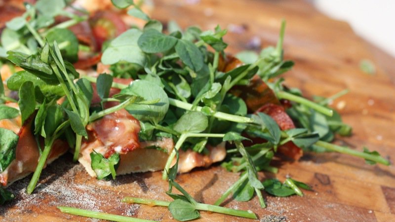 Above, one of Teresa’s gorgeous pizzas, and more of Mack and Sharon’s. People loved the pea tendril topping.