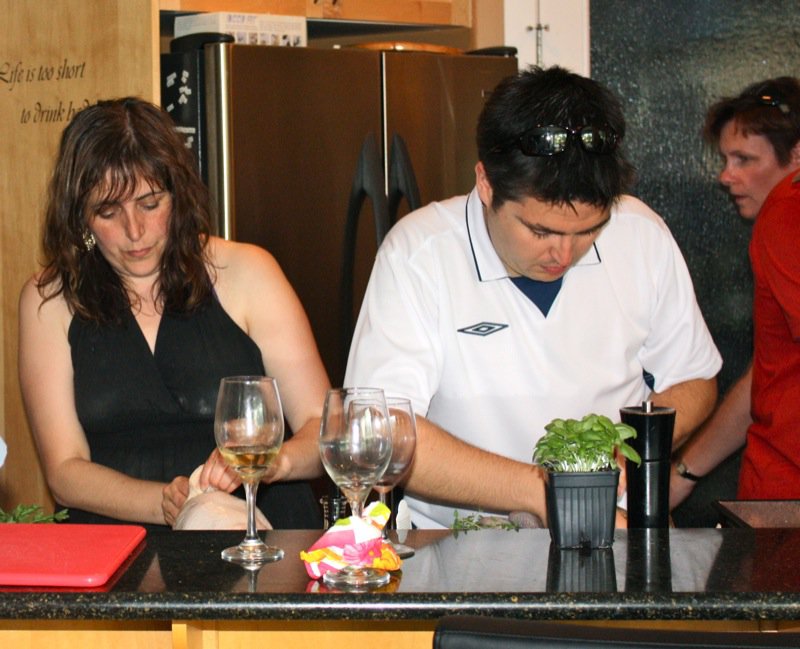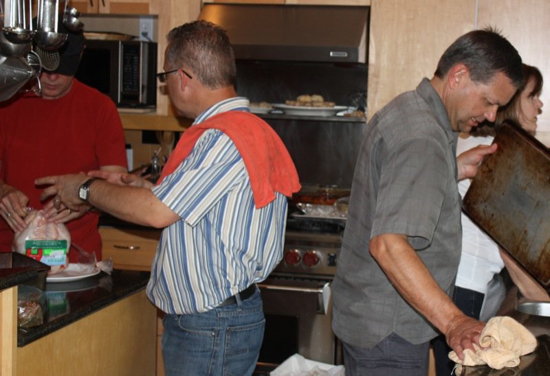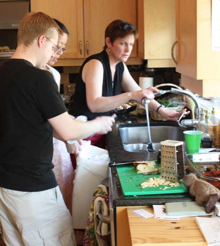 Main course people are rockin’ in the kitchen… well, some are. Others are contemplating their dish.