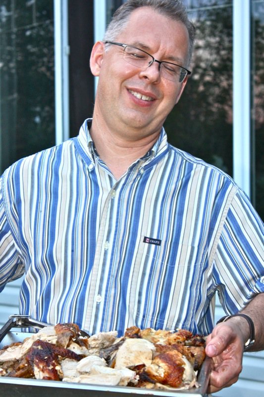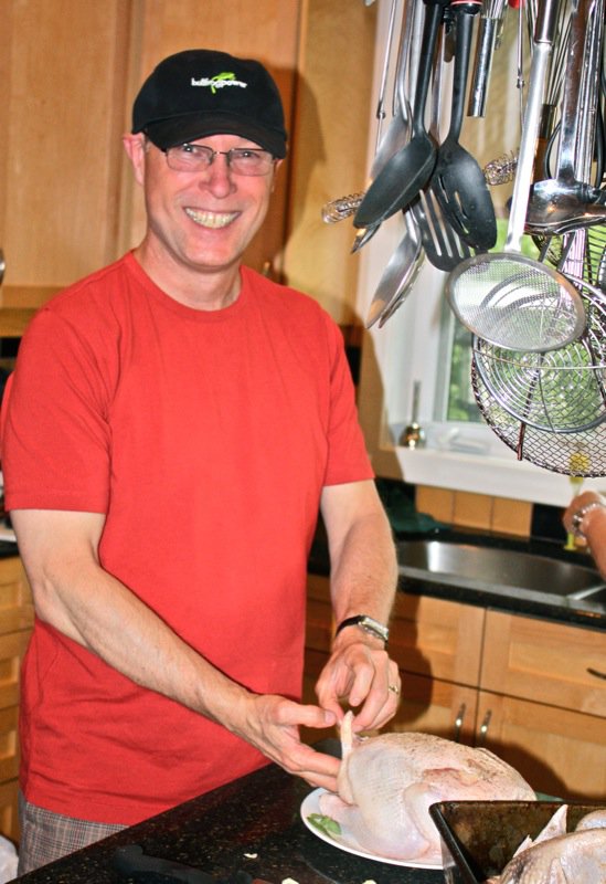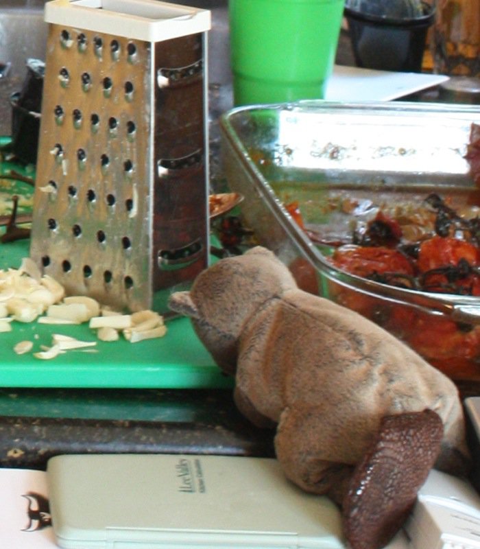 Beavie is not even a carnivore, but he is a curious and clever little guy. I think he was wondering what these birdies did to get into such a predicament. Vince had the duck in the oven earlier as it takes longer to cook.
