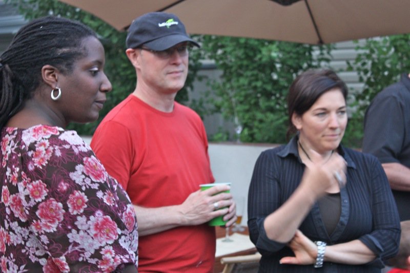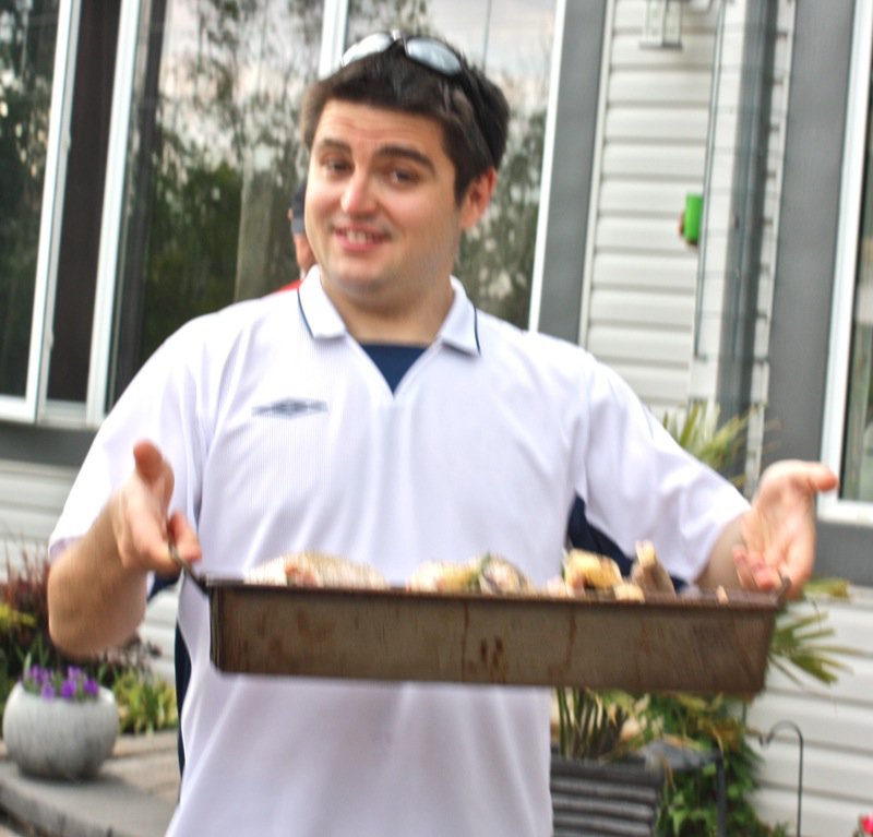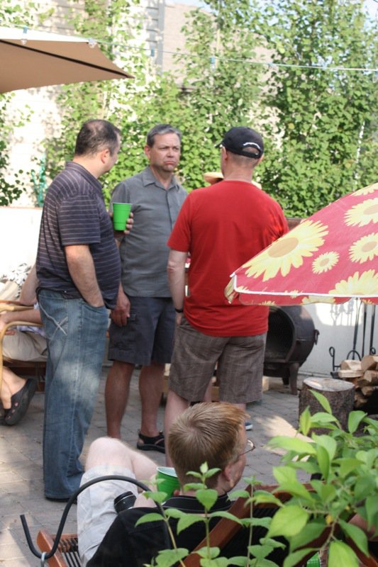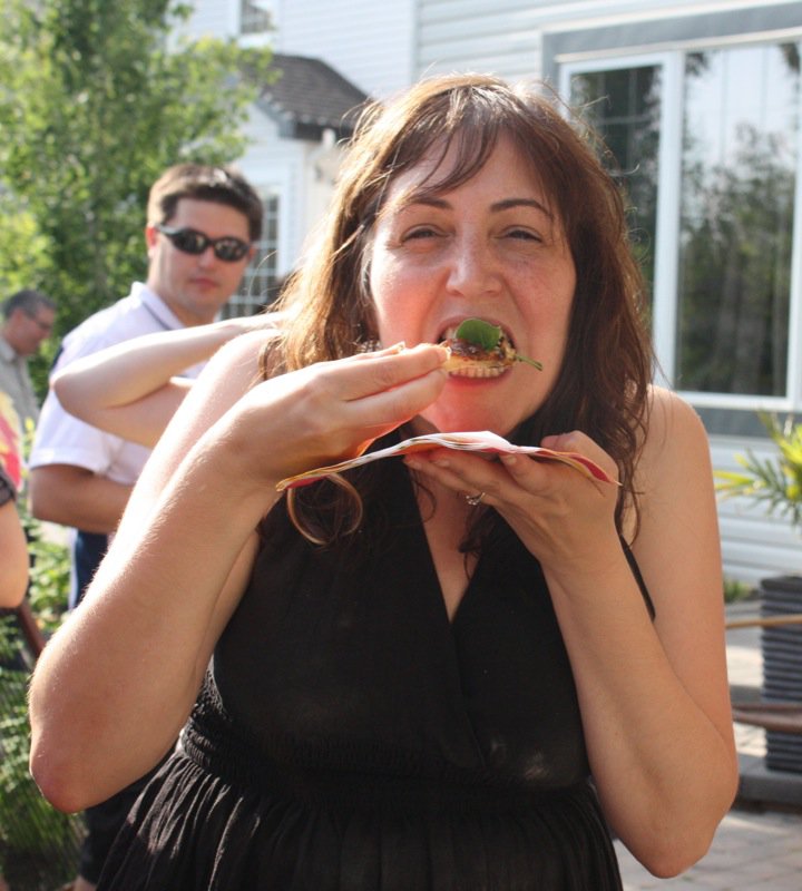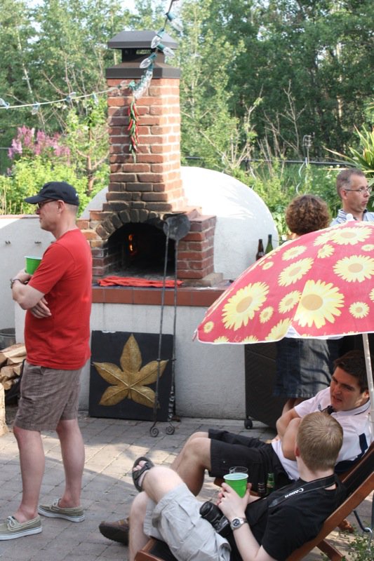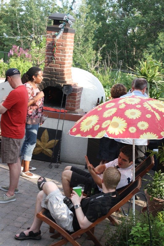 The day was hot. This is definitely rare for a weekend day in Edmonton, this season, so we were all very much in the celebratory mood! Vince had Sophia all fired up and was heating her to be able to cook all of the delectable items the couple had doled out to all of us. Planning this party, Vince and Colleen decided to have all of us bring food to be cooked in the outdoor oven. They organized it just enough to know what was coming, more or less. They were amazing hosts. Calm. Reassuring. Positive and nurturing. And, by my third pizza creation, I needed a little nurturing. It wasn’t hard… but, Sophia cooked them so quickly that she really kept us hopping to get them done one after another.