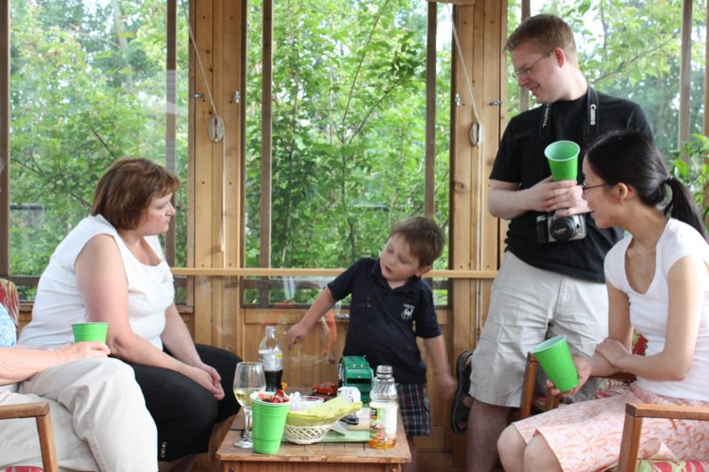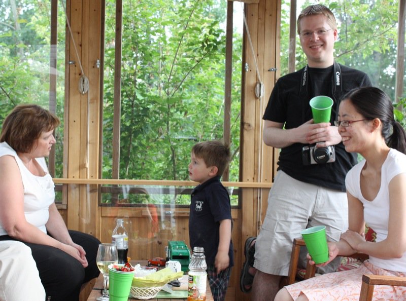 The sun has just ducked behind the horizon. The outdoor lights are twinkling. Sophia is dying down. Dishes are done and more await. Guests are trickling off toward home, big smiles pasted on their faces as little droplets of food decorate their shirts. What a day!