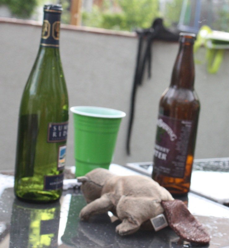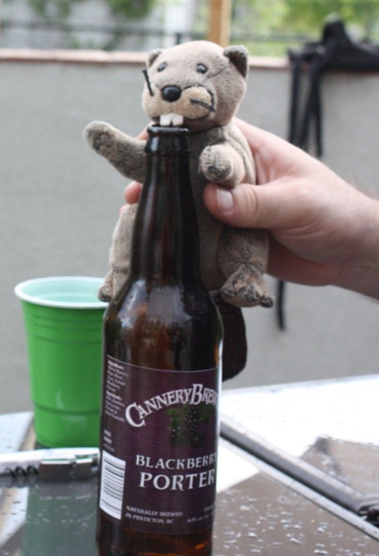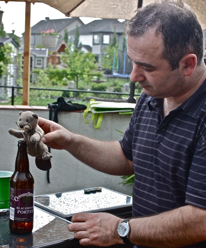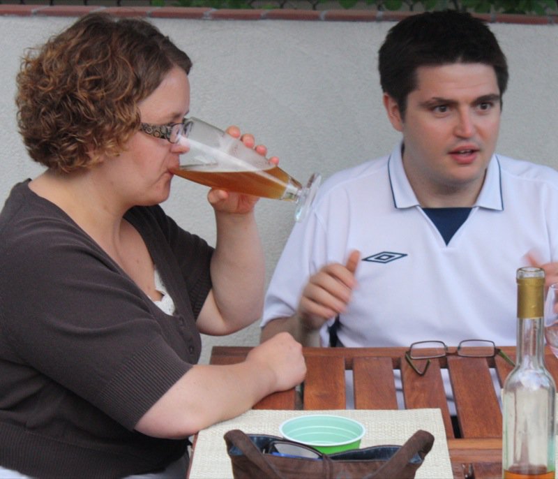 Look at that bread. I know what it tastes like, so it was really hard not to sneak any! Vanja is definitely a bad influence on Beavie. Look at this! Beer drinking Beavie, and then?