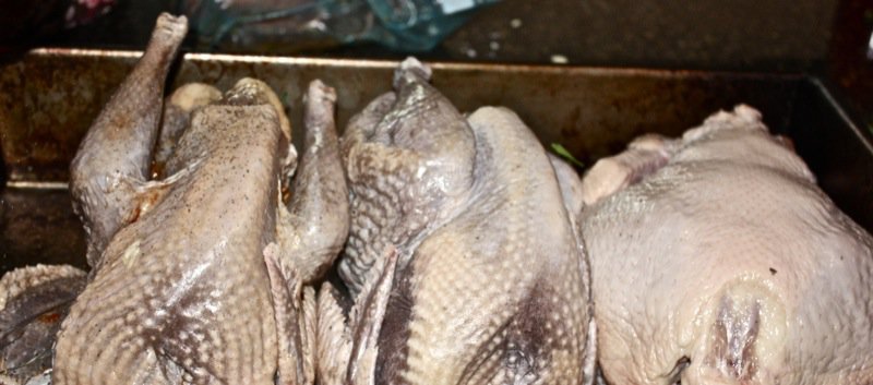 Back in the kitchen, I discovered that there were two Guinea Fowls, one duck, on chicken and some pork on the meat menu. Be forewarned! Food porn coming up. Not the usual kind!