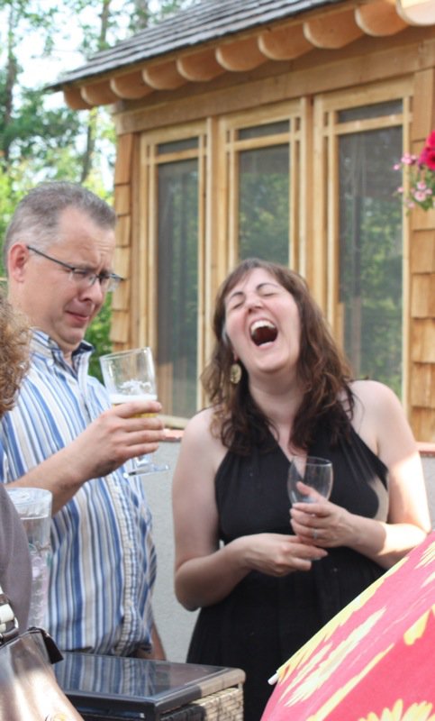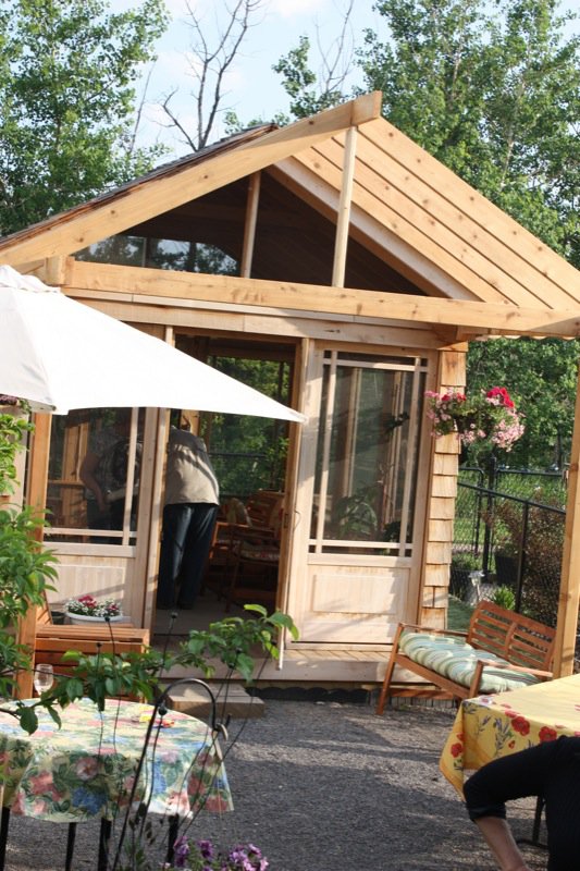 The screened in outdoor room is a lovely little refuge from the crowd. Colleen and Vince spend all summer in their yard and in this lovely place. The pergola is a recent addition which adds a lot of charm to the entrance. I can’t wait to see what they do to it. Hmmm. Hops grow really fast. Maybe a vine of hops up and around it?